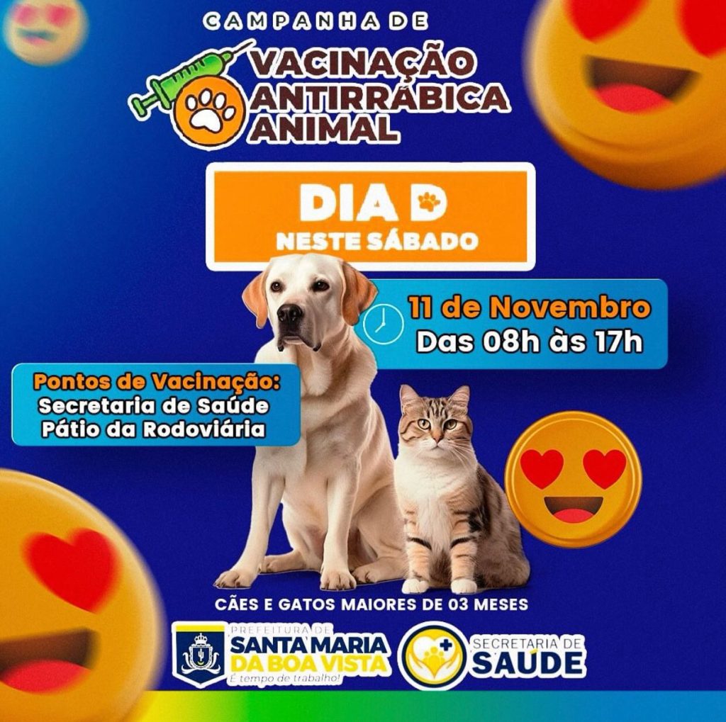 A Prefeitura de Santa Maria da Boa Vista irá realizar, no próximo sábado (11), o Dia “D” de Vacinação Antirrábica para cães e gatos com idade superior a 03 meses de vida. Nessa primeira etapa serão beneficiados os animais da zona urbana, que tenham ou não recebido a vacina ao longo de 2022. As aplicações […]