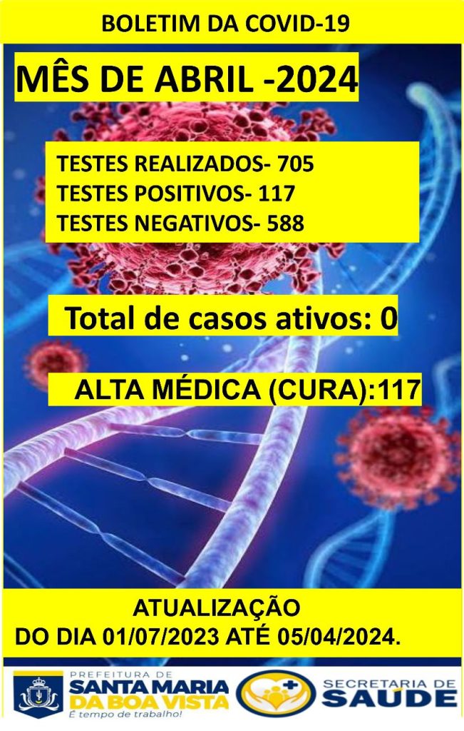 MÊS DE DEZEMBRO DE 2023 Testes realizados – 436Testes positivos – 69Testes negativos – 367 TOTAL DE CASOS ATIVOS: 11 UBS AGROVILA 29 – Positivo: 01UBS SENADOR PAULO GUERRA – Positivos: 03UBS URIMAMÃ – Positivo: 01UBS RAIMUNDO BEDOR – Positivos: 04UBS SANTA LUZIA II – Positivo: 01UBS MILANO – Positivo: 01 […]