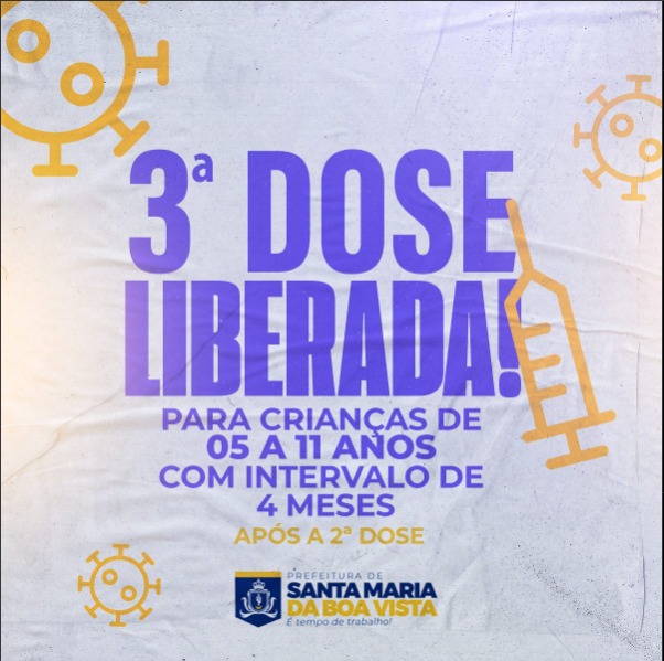 3º dose liberada para crianças de 5 a 11 – 13 DE JANEIRO 2023